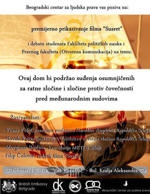 Članovi Debatnog kluba Fakulteta političkih nauka će se u sredu 22. februara 2012. godine naći lice u lice sa članovima Debatnog kluba Pravnog fakulteta na debati čija tema glasi: